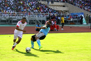 Katika Tamasha la matumaini,mchezaji Ali Kiba wa Bongo Fleva akimtoka mchezaji Issa Musa Cloud 112 wa Bongo Movie. Katika mchezo huo Bongo Fleva walishinda 1-0
